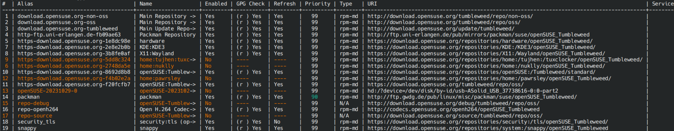 Provide the complete output from "zypper dup" and "zypper lr -d". We do not even ship this specific package in the distribution (In reply to hui from comment #1) > Provide the complete output from "zypper dup" and "zypper lr -d". zypper dup Computing distribution upgrade... Problem: 1: problem with the installed libSPIRV-Tools-2024_1_rc1-2024.1~rc1-110.3.x86_64 Solution 1: install libSPIRV-Tools-2024_1_rc1-2024.1~rc1-1.2.x86_64 from vendor openSUSE replacing libSPIRV-Tools-2024_1_rc1-2024.1~rc1-110.3.x86_64 from vendor obs://build.opensuse.org/X11 Solution 2: keep obsolete libSPIRV-Tools-2024_1_rc1-2024.1~rc1-110.3.x86_64 zypper lr -d https://files.catbox.moe/6v3usb.png You installed a package from the X11 repository. This is expected and does not concern the distribution. Select Solution 1 to resolve this particular thing. Thanks it worked! |